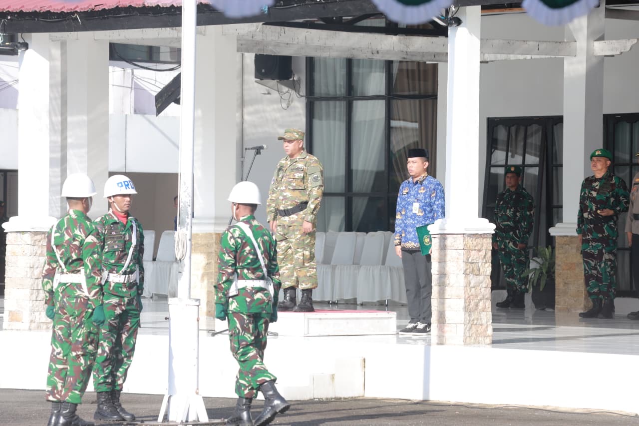 MARABAHAN – Bupati Barito Kuala, H. Bahrul Ilmi, bertindak sebagai Pembina Upacara Kesadaran Nasional (17-an) bulan Maret yang digelar bersama jajaran Kodim 1005/Batola. Momentum ini sekaligus dirangkaikan dengan perkenalan Komandan Batalyon (Danyonif) dan Wakil Komandan Batalyon (Wadanyonif) 925/Ksatria Wangkang di Halaman Kantor Bupati Barito Kuala, Selasa (17/03).