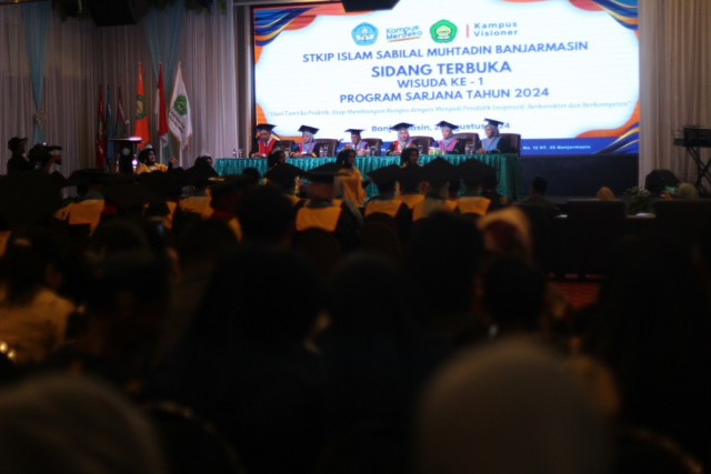 Banjarmasin – Nusantara.co, STKIP Islam Sabilal Muhtadin Banjarmasin merayakan momen bersejarah dengan sukses menyelenggarakan wisuda perdana pada 28 Agustus 2024 di Gedung Himayala HBI. Sebanyak 87 lulusan dari tiga program studi: S1 Pendidikan Bahasa Inggris, S1 Pendidikan Guru Sekolah Dasar, dan S1 Pendidikan Anak Usia Dini, dengan penuh bangga menerima gelar Sarjana Pendidikan dalam acara yang berlangsung dengan penuh khidmat.